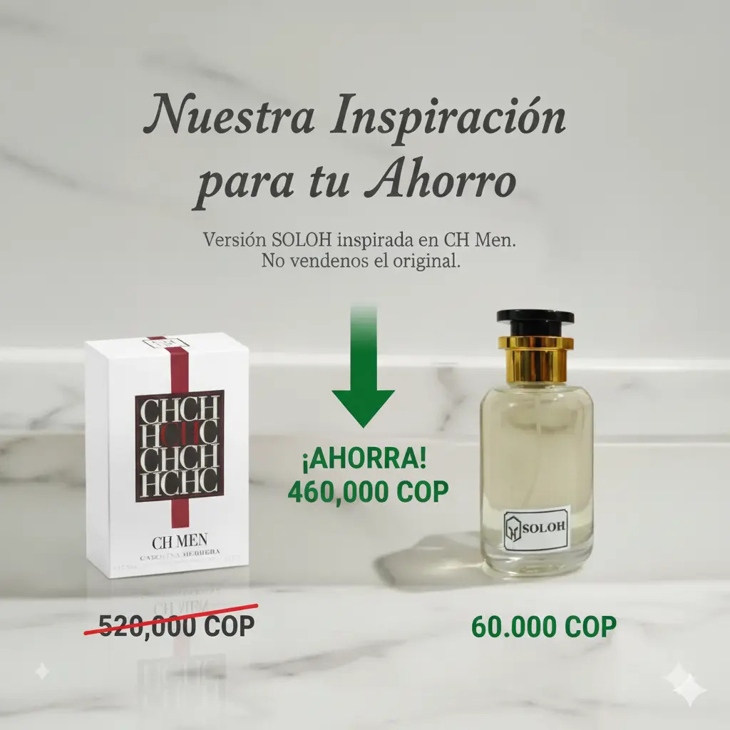 Redescubre la elegancia espontánea con nuestra fragancia inspirada en CH Men. Creada para el hombre cuyo estilo es un viaje en sí mismo, esta esencia es el accesorio invisible que te define, transformándose de una frescura vibrante a un abrazo adictivo de cuero y azúcar que narra tu historia.